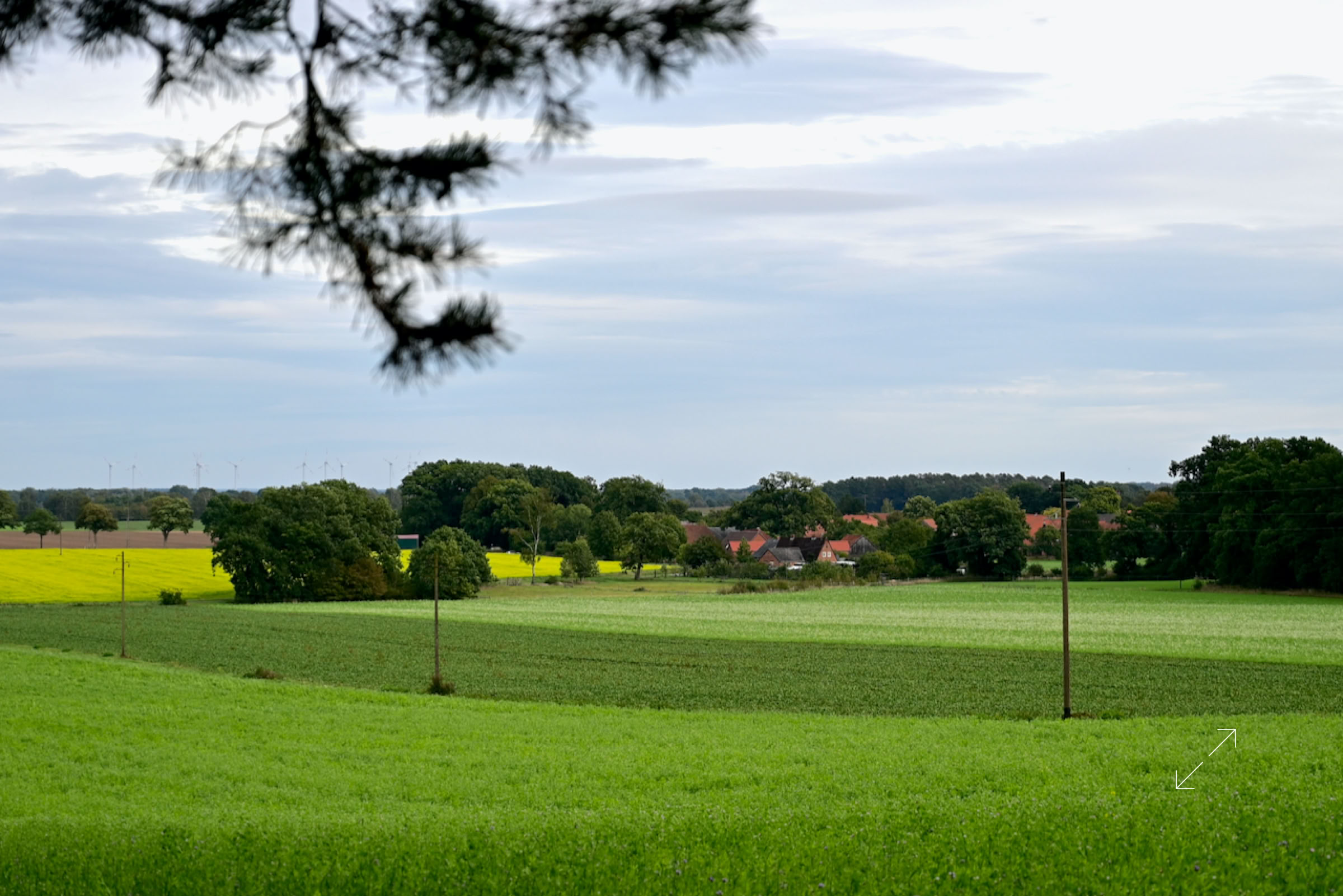 Blick aufs Dorf von der höchsten Erhebung (100 Meter) westlich von Wiswedel.